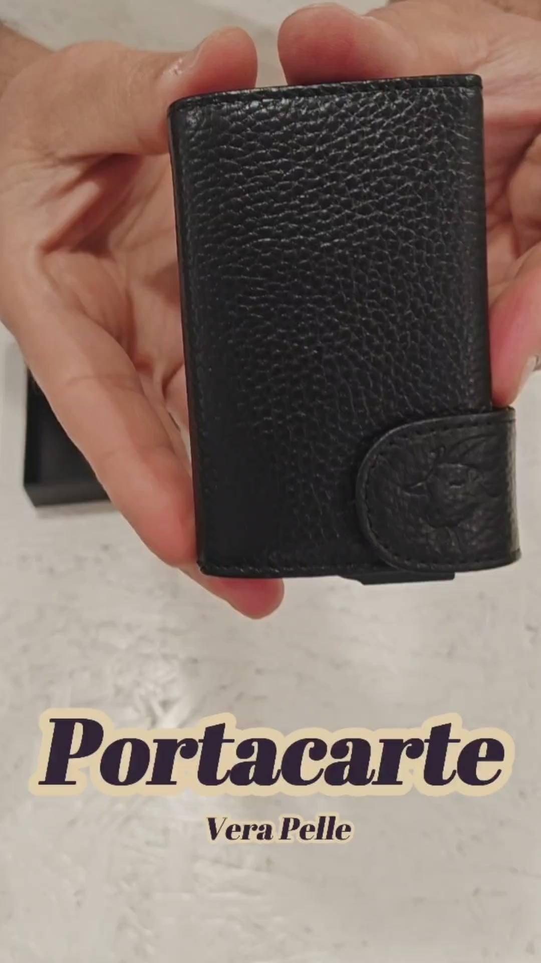 portafogli in pelle bovina bottalata - chiusura con bottone automatico - porta 6 carte a scatto più 2 carte su tasche a toppa - tecnologia rfid proteggi carte - logo a rilievo - 11x7x1,5 cm.